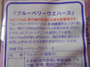 ブルーベリーの風味が好きな人にはおすすめですし、目の疲れが気になる人もおすすめしたいウエハースということで、ぜひともお試しあれ^^