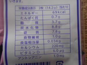 ウエハースの食感が少々頼りないですが、肝心のブルーベリー味はまずまず出ているので、アントシアニンが欲しい派としては問題なしですね!