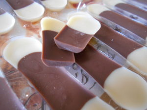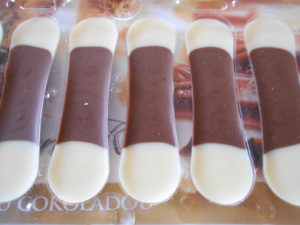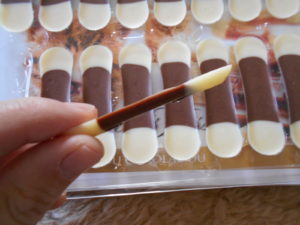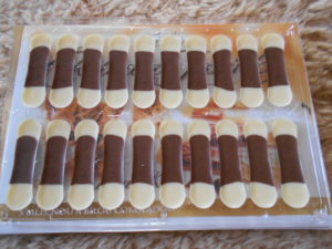 ホワイトチョコの上にチョコレートをコーティングしている感じですかね?
