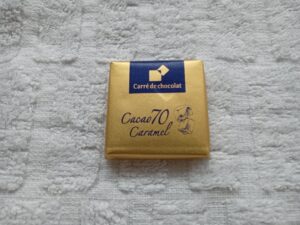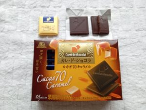 カカオ70%の深さがキャラメルの甘味を抑えて、大人の美味しさに変えているという雰囲気です。