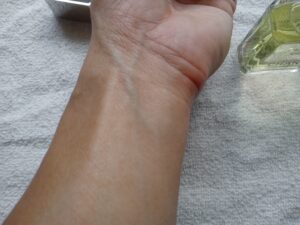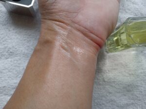 それでは実際に肌につけて着け心地と香りの確認をしていきます。