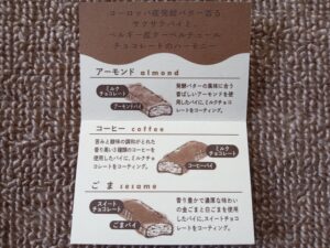 アーモンド、コーヒー、ごまの3種類です。