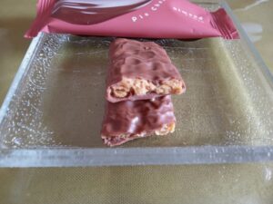 口入れすると、サクッというよりも「ズサッ」という感じで「口の中でチョココーティングが崩れて中のものが出てくる」食感が来訪。