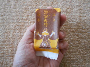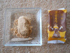 頂いたお菓子は「治安孝行」という名前で、読み方は「ちゃんここ」になるのだとか。
