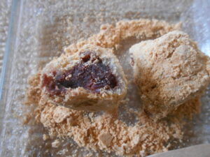 ミニマムな大きさですが、甘さと黄な粉の量がかなりあるので、これ一つでお茶がゆっくり飲めるコスパの良さが光ります。