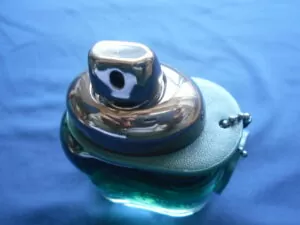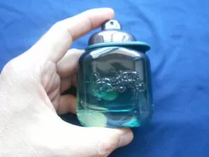 名前の通りにグリーン色のガラスボトルと、キャップに付属しているチェーン&ネームプレートが「凝ってるな~」と。