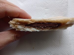 ただチョコクリーム自体はもう少しソフトだが、中の板チョコが恐らく濃いパワーを出しているので、それの印象が強いですよ。