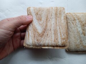 匂いはサンドイッチのパンの軽く香ばしいイースト菌フレーバーと、ほのかなチョコフレーバー。