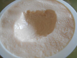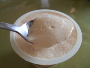 プリンと言えば「プッチンプリン」のイメージが強くあるので、開けたときの見た目が「プリンプリン」している絵を想像していました。ところがここでは・・・