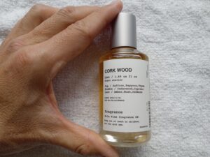 その名の通りに「コルク」と「ウッド」の香りになるので、つけ始める前から「煙たい雰囲気」がビンビンに伝わってきます。