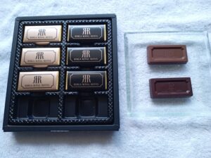 チョコ本体は2種類でしたが、どちらも甘さは控えめで、非常にさっぱりした味わいでした。