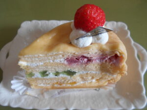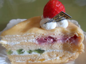 クレープケーキのミルキーな味わいと、各種フルーツの味わいの組み合わせが新鮮な美味しさでした。