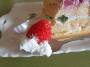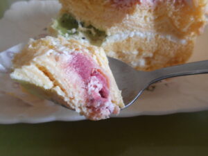 ただこれだけだとクレープケーキの「甘ったるさ」が強調されてしまうのですが、ここにアクセントとしての「4種のフルーツ」が加わって来るので、これはかなり必要な要素だなと感じました。
