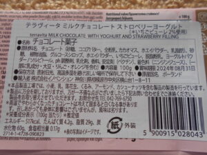 前回同様にマイルドな甘さが好評だった、テラヴィータのストロベリーヨーグルトミルクチョコレート。