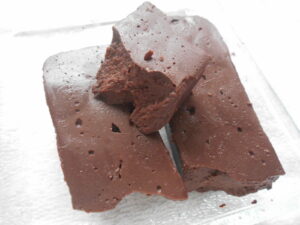 少し固めのチョコレートムースを食べているような味わいで、普通に「美味しいチョコレートムース風ケーキ」を食している味わいになりました。