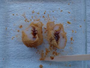 割ってみますと、中に餡が入っていました。