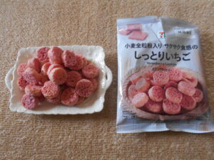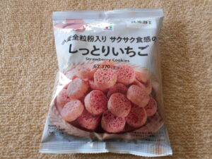 これまではチョコレートが主役のヘルシーシリーズでしたが、今回は小麦全粒粉はそのままに、そこにいちごを練り込んだ「しっとりスイーツクッキー」という仕上がりになっています。