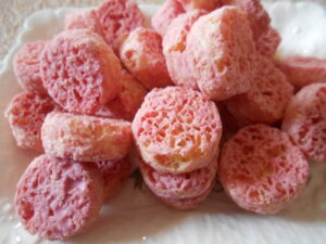 いちご粉末入りチョコレートコーティング、コーングリッツ、パン粉、小麦全粒粉、脱脂粉乳